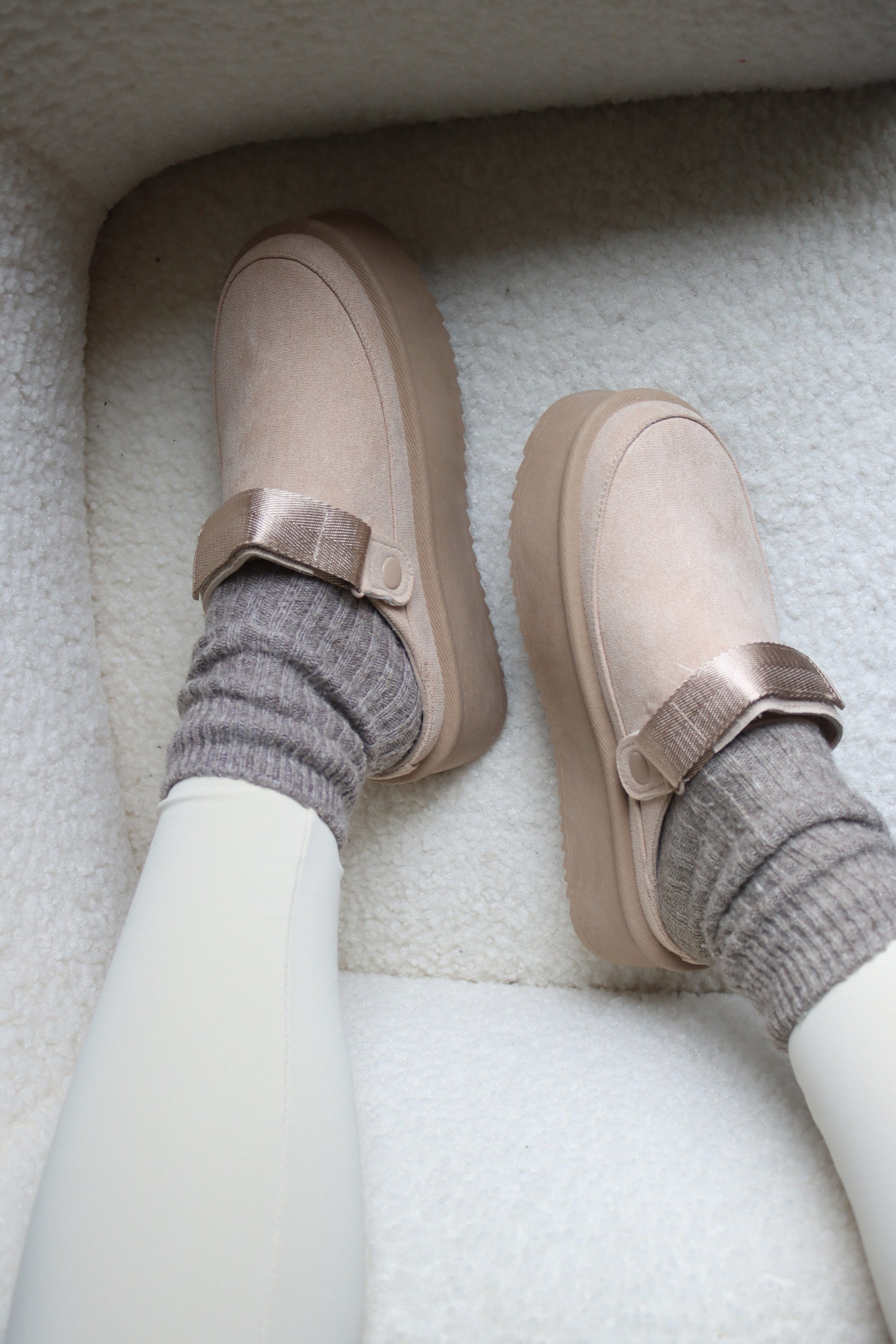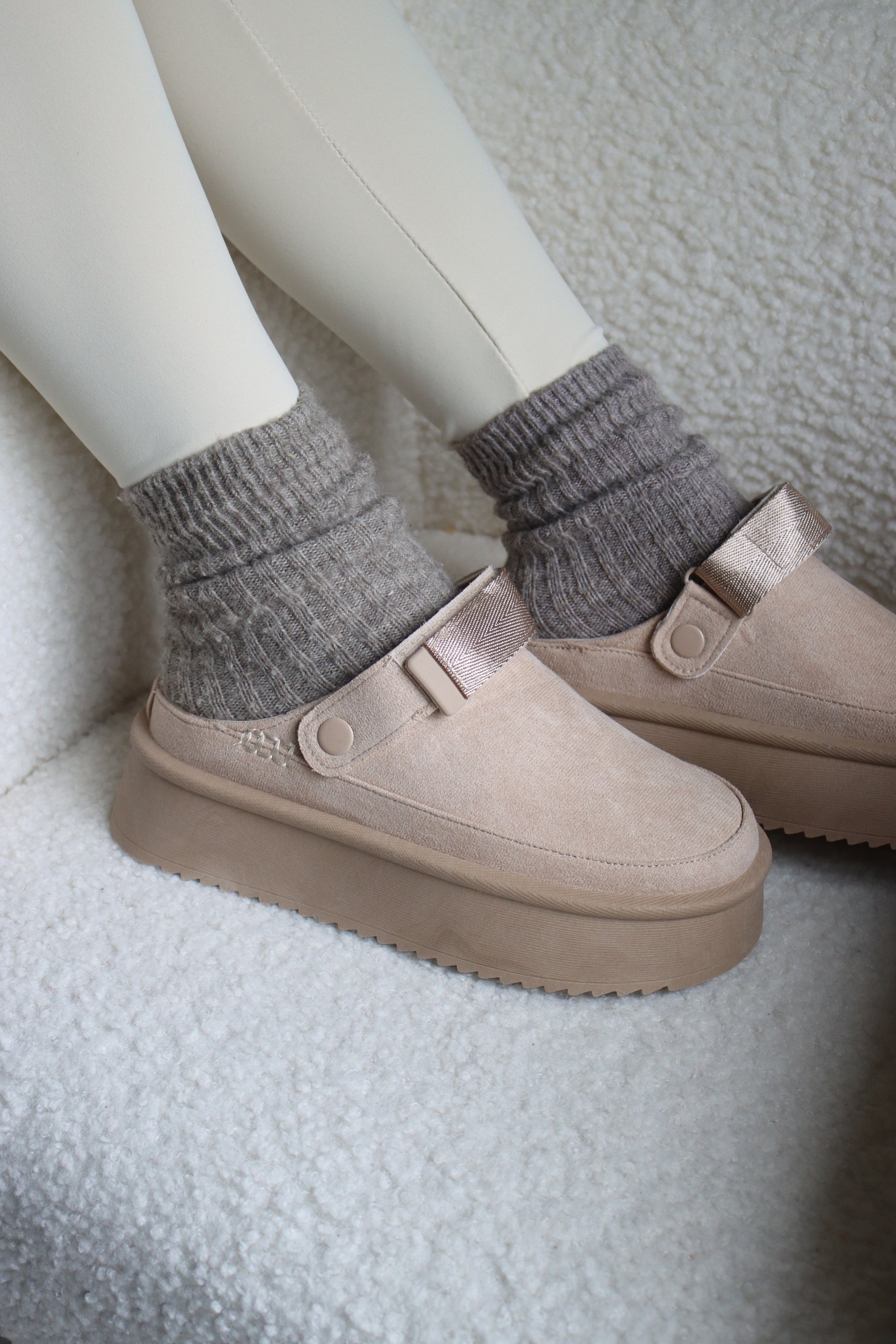 ✨ Mules Suédine Plateforme – Beige Sable ✨